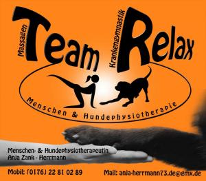 Das TEAM RELAX ist bei Bedarf auch vor Ort und checkt euren Hund physiotherapeutisch durch.
